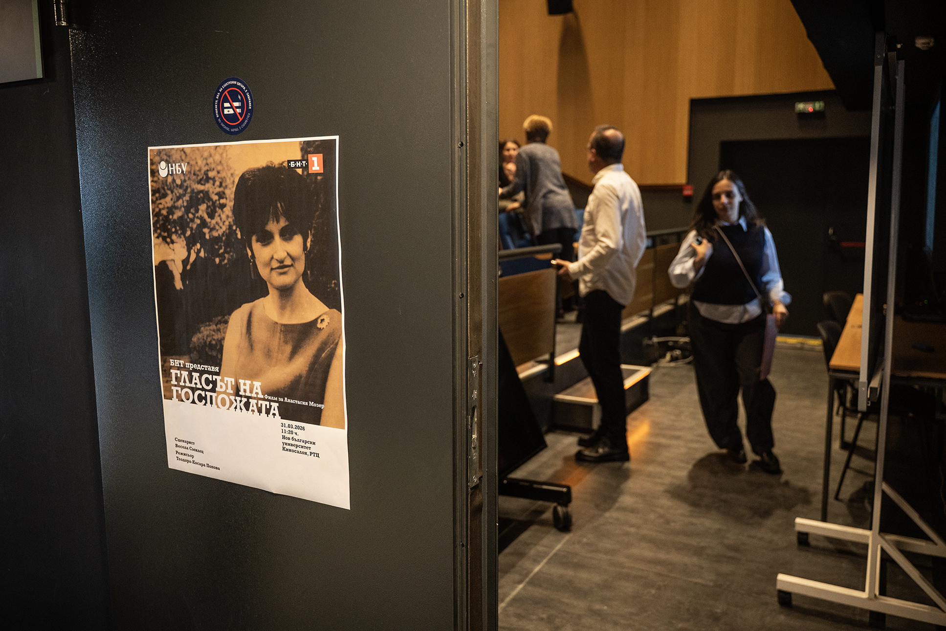На 24 март Киносалонът на Нов български университет се превърна в трибуна за един вълнуващ разговор за паметта, достойнството и прехода. Студенти, преподаватели и гости съпреживяха прожекцията на документалния филм „Гласът на госпожата“, посветен на д-р Анастасия Мозер – дългогодишен член на Настоятелството на НБУ, дарител и емблематична фигура в новата българска история.